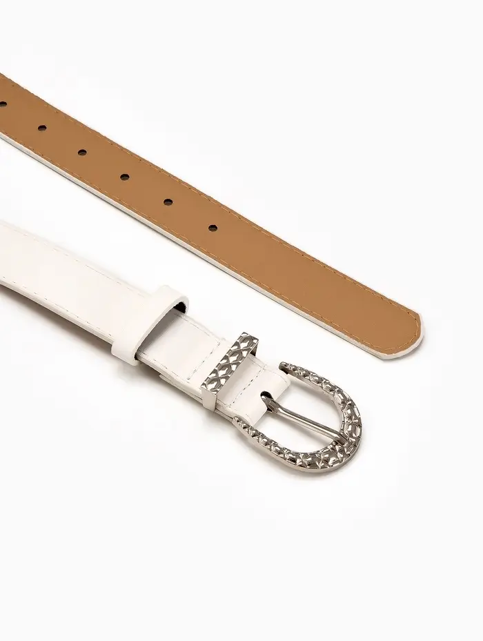 Ремень жен 05-01-02-01, Июнь2509, 3*0,3*110 см, без винта, пряж металл, 1 прокол, белый