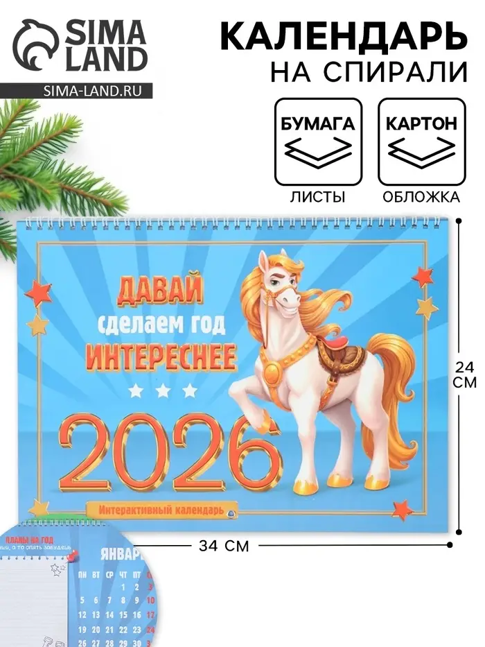 Календарь 2026 на спирали большой «Сделаем год интереснее»