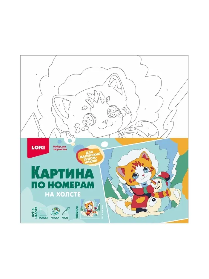 Картина по номерам на холсте 20*20 см "Кот и снеговик" Рхд-039