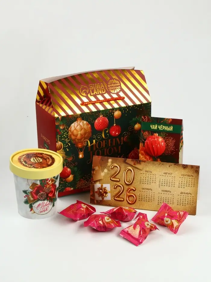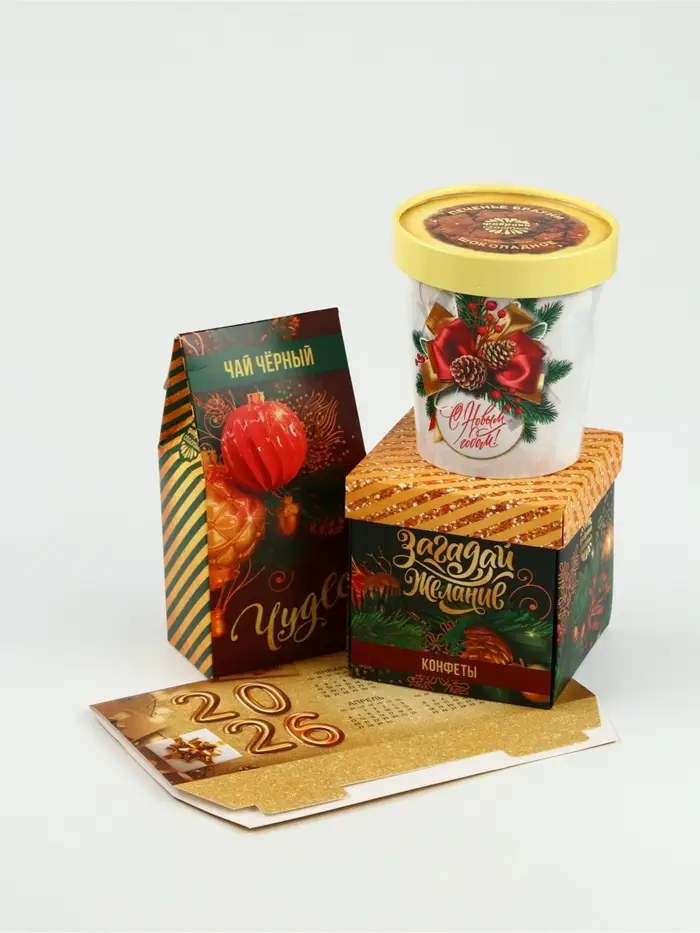 Подарочный набор «С Новым годом»: чай (50 г), конфеты (110 г), печенье брауни (120 г)