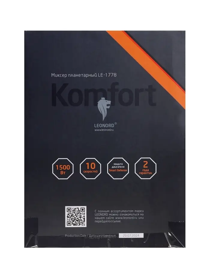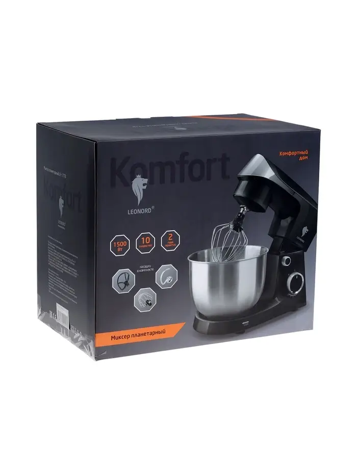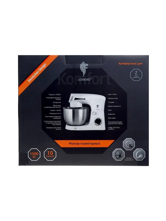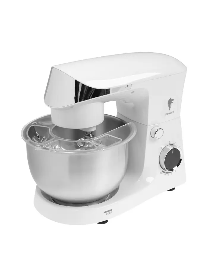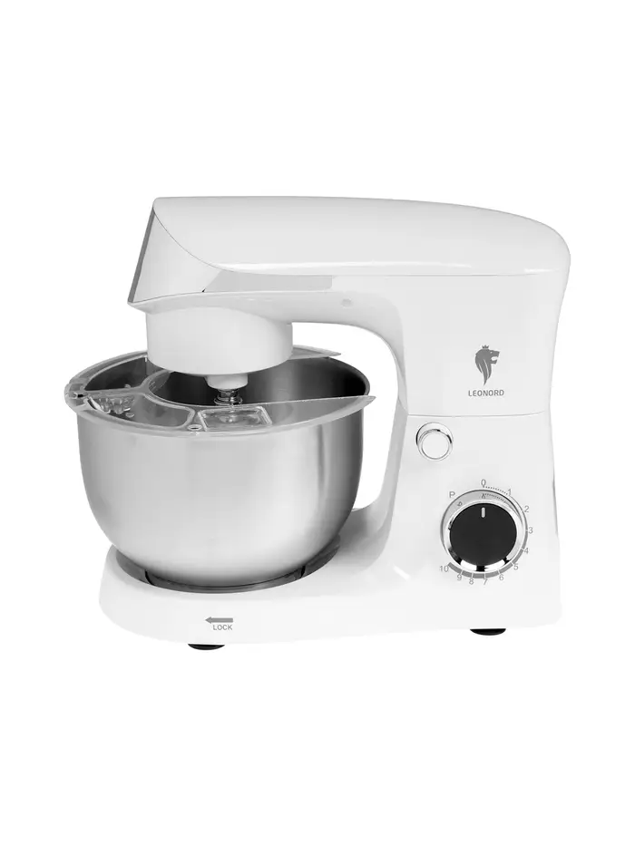 Миксер планетарный Leonord LE-1778, 1500 Вт, 10 скоростей, 3 насадки, чаша 3 л, белый