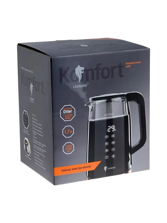 Чайник электрический Leonord LE-1511, 1.7л,дисплей, поддержание температуры 40-100℃,черный