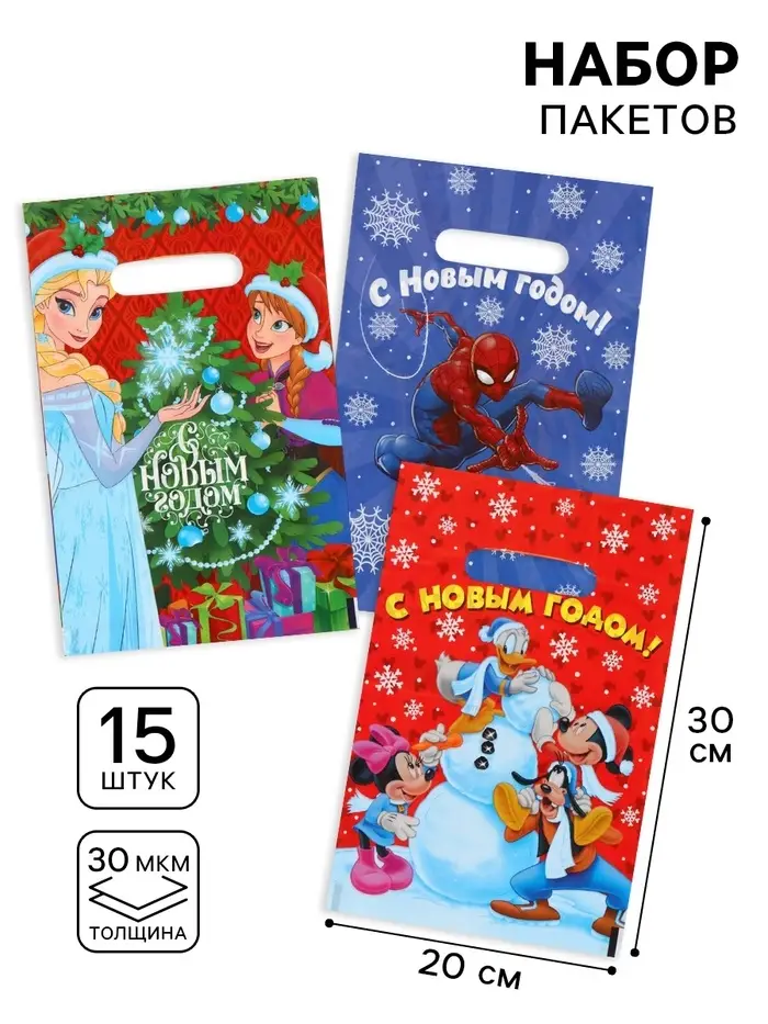 Пакеты подарочные новогодние полиэтиленовые «Новый год», 20×30 см, набор 15 шт.