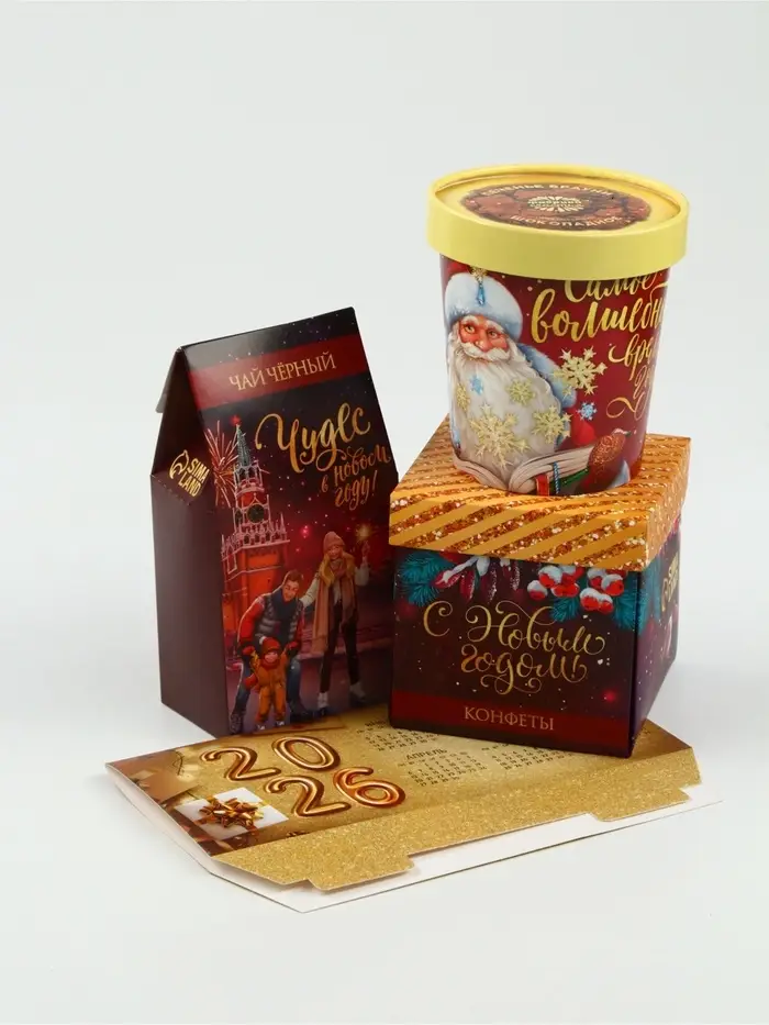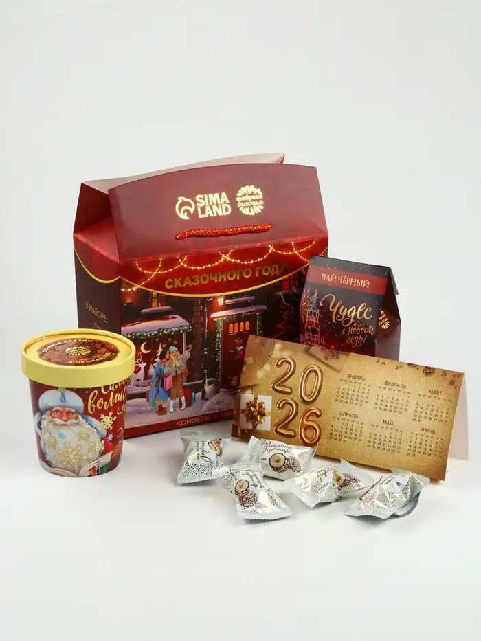 Подарочный набор «Сказочного года»: чай (50 г), конфеты (110 г), печенье брауни (120 г)