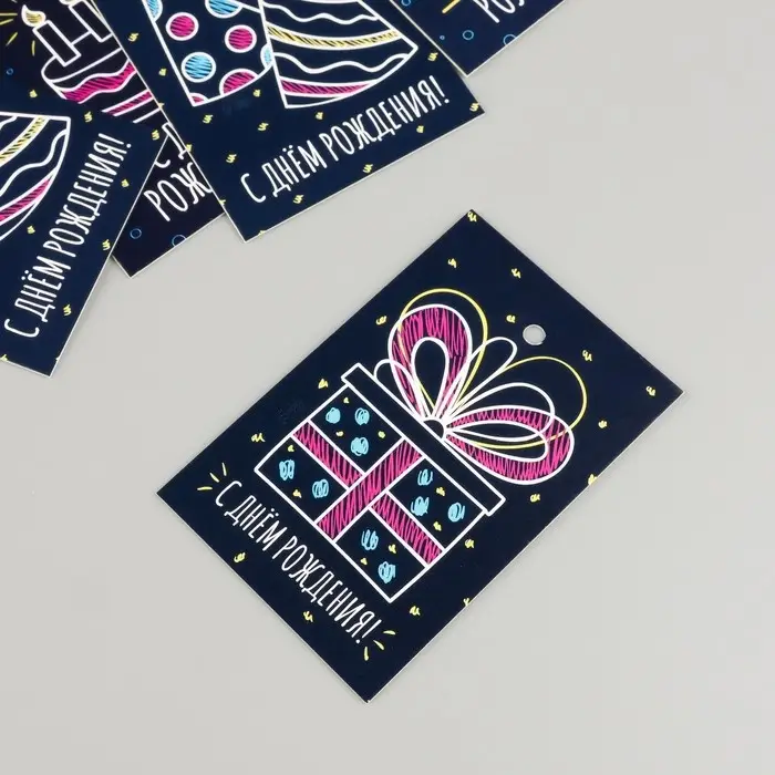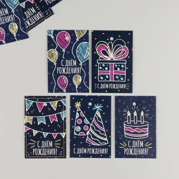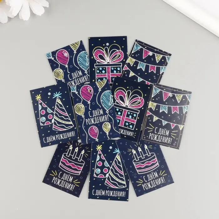 Бирка картон "С Днем Рождения" набор 10 шт (5 видов) 4х6 см