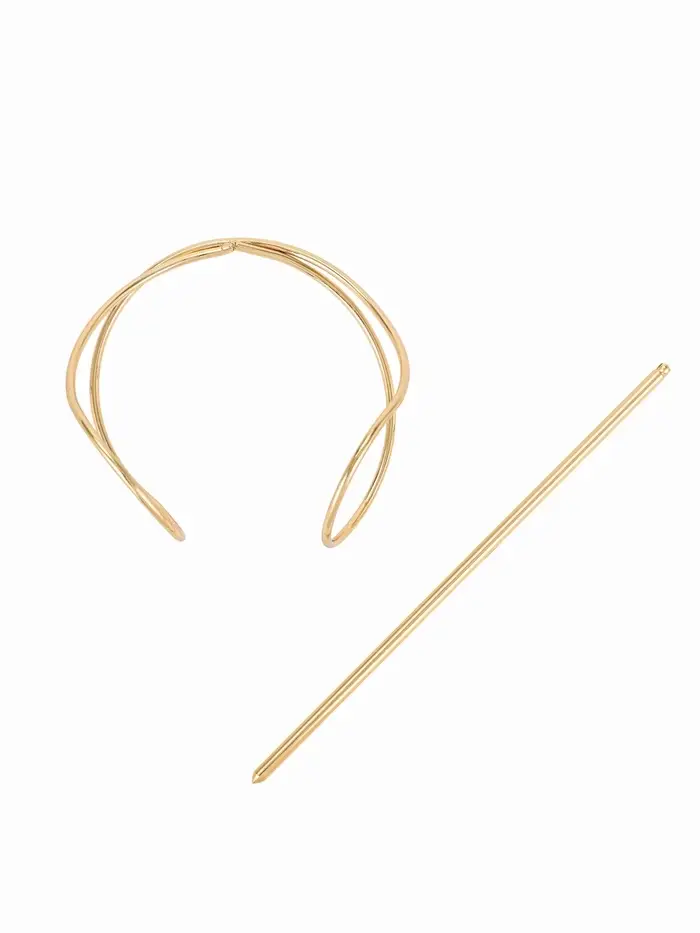 Элегантность, застывшая в металле. Золотой зажим «Джулен» — это стильный аксессуар для волос, сочетающий лаконичный дизайн и надежную фиксацию. Он легко справляется с объемом и добавляет образу завершенность.