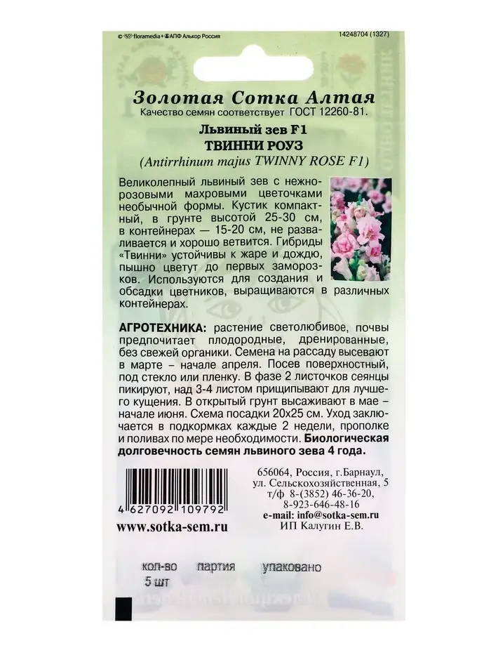 Семена Львиный зев Твинни Роуз F1 /Сотка/ 5 шт/*500