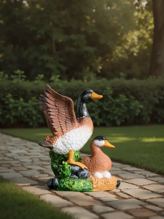 Садовая фигура из полистоуна «Утка с селезнем», 24×17×35 см