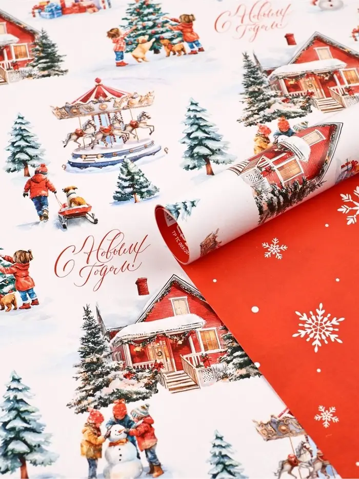 Бумага упаковочная глянцевая двухсторонняя «Новогодняя акварель», 50×70 см