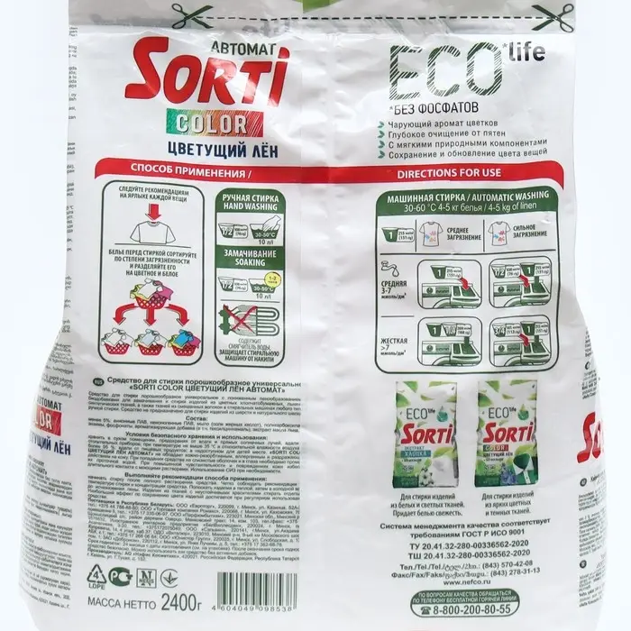 Стиральный порошок Sorti "Цветущий лен", автомат, 2.4 кг