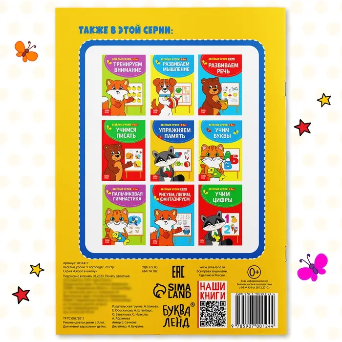 Книга для развития речи «У логопеда», весёлые уроки 3-5 лет, 20 стр.
