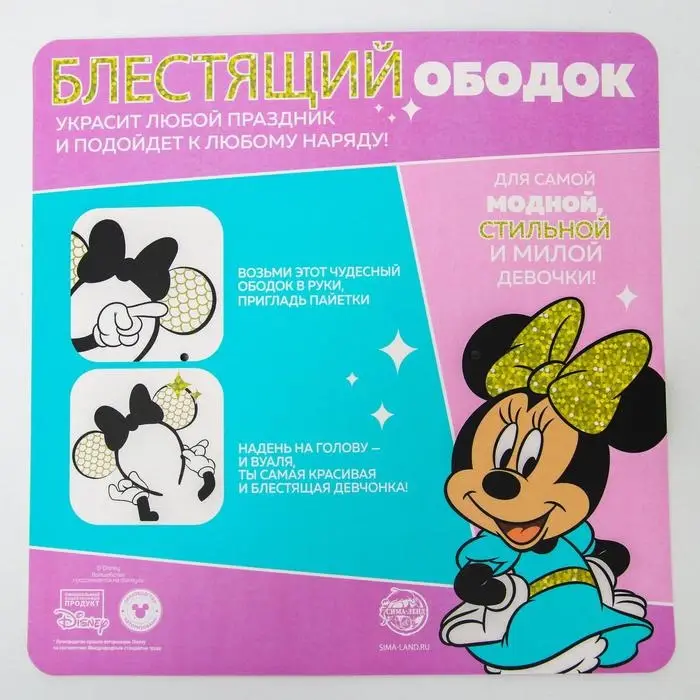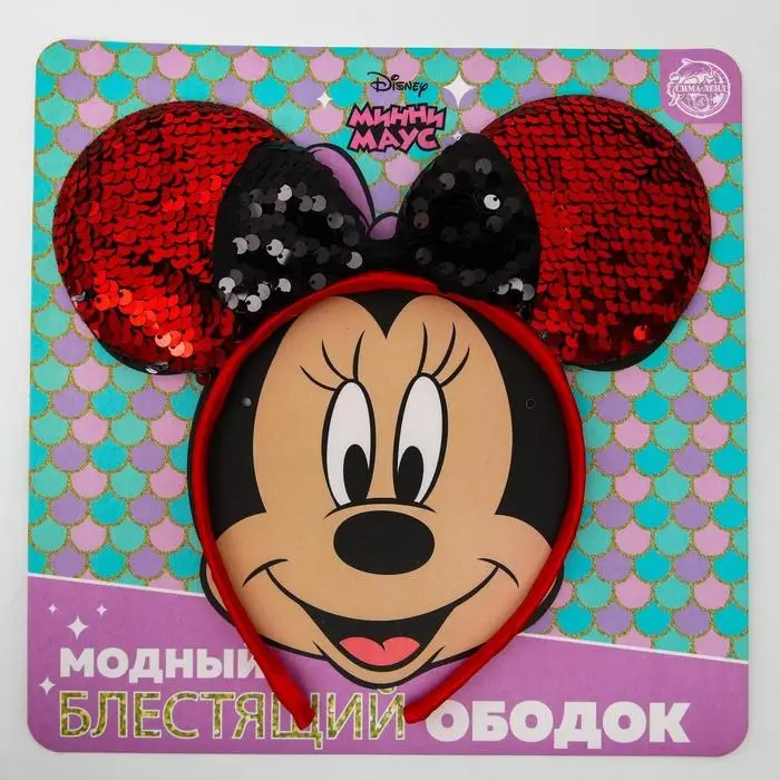 Ободок с паетками Минни Маус, красный