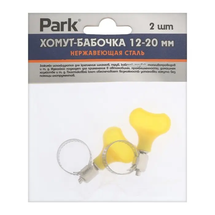 Хомут червячный с ключом Park, диаметр 12-20 мм, ширина 8 мм, нержавеющая сталь, 2 шт.