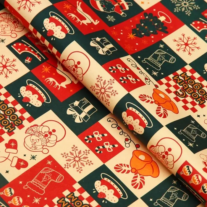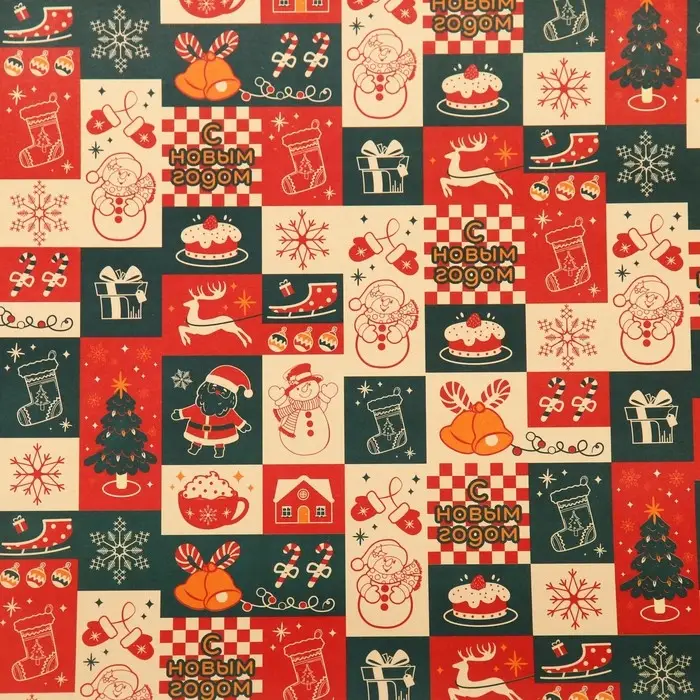 Бумага упаковочная новогодняя крафт белый "Календарь", 50 х 70 см.