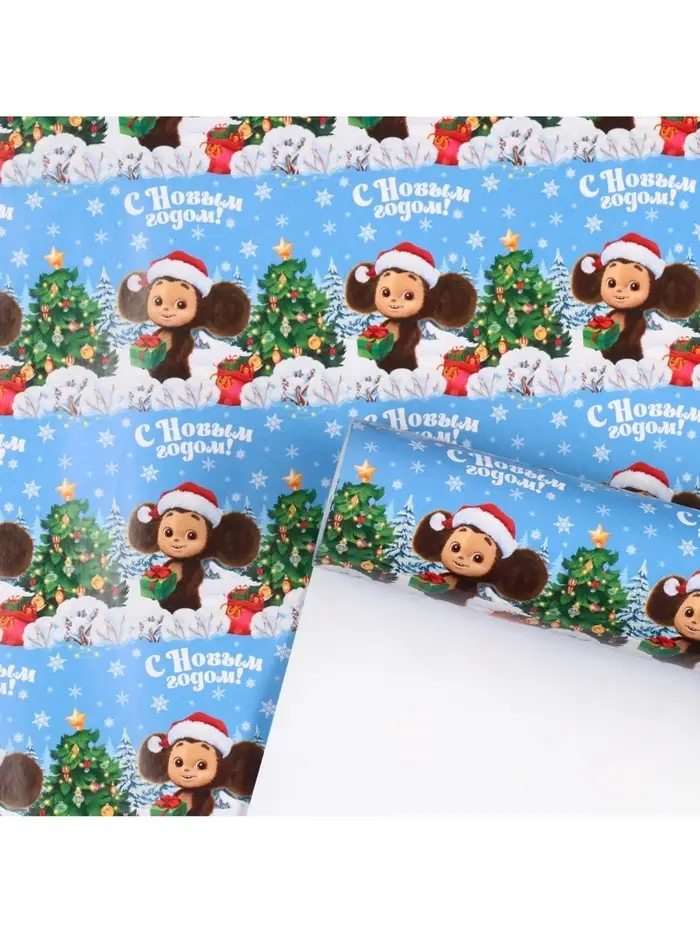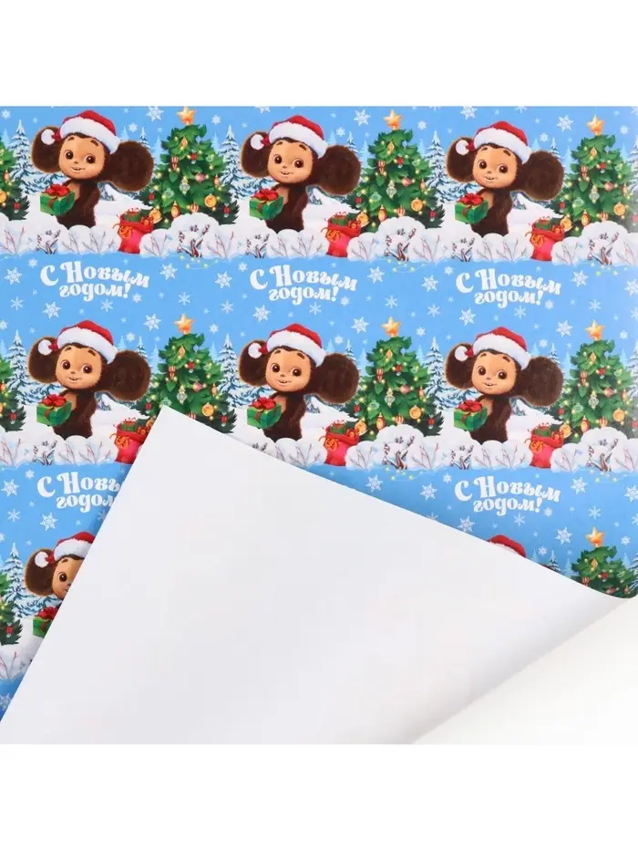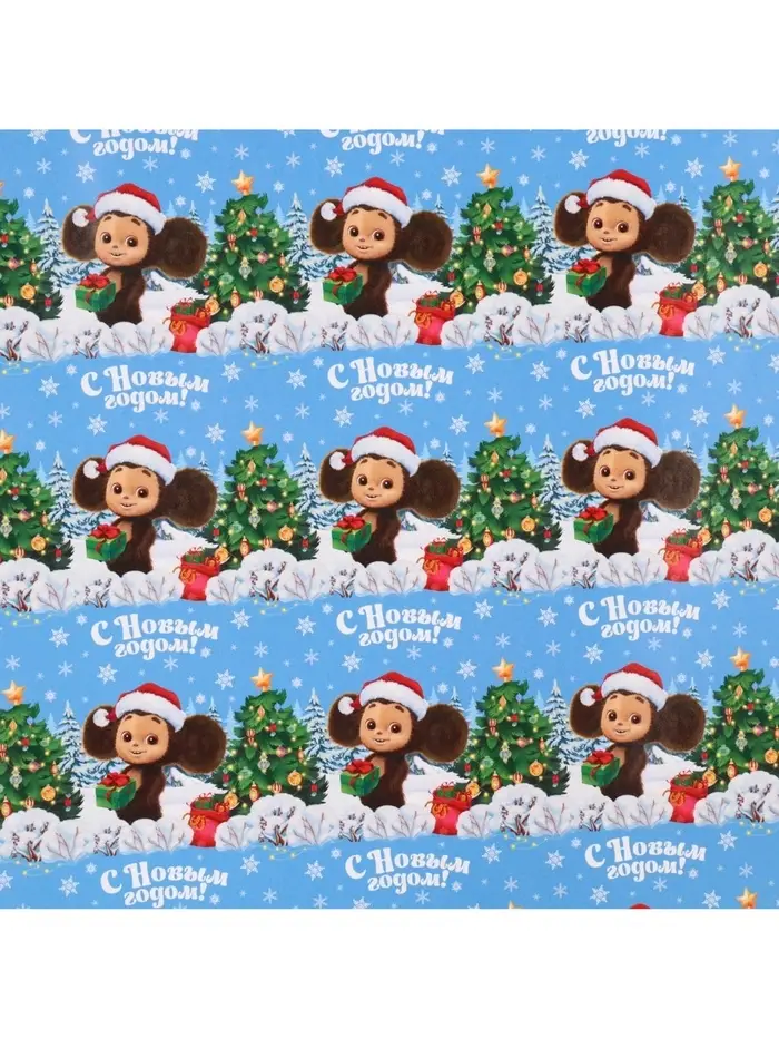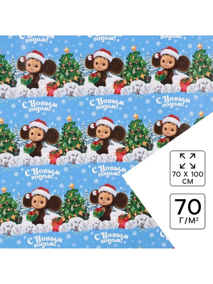 Бумага упаковочная «Новый год» 70 х 100 см, Чебурашка