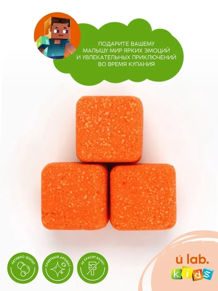 Бомбочки для ванны «Кубики», набор 3 шт x 70 г, аромат шипучий апельсин, URAL LAB