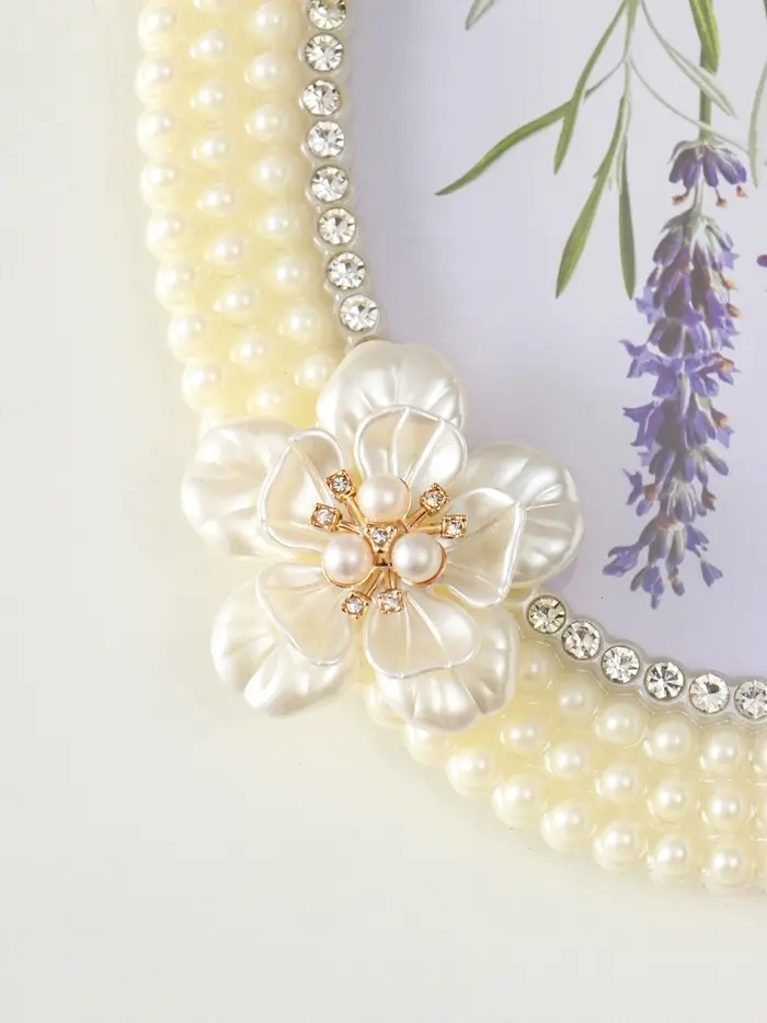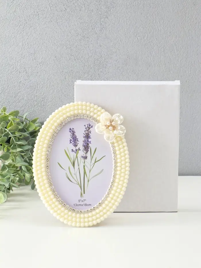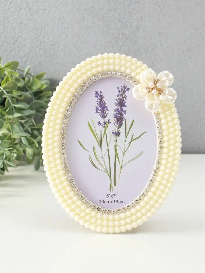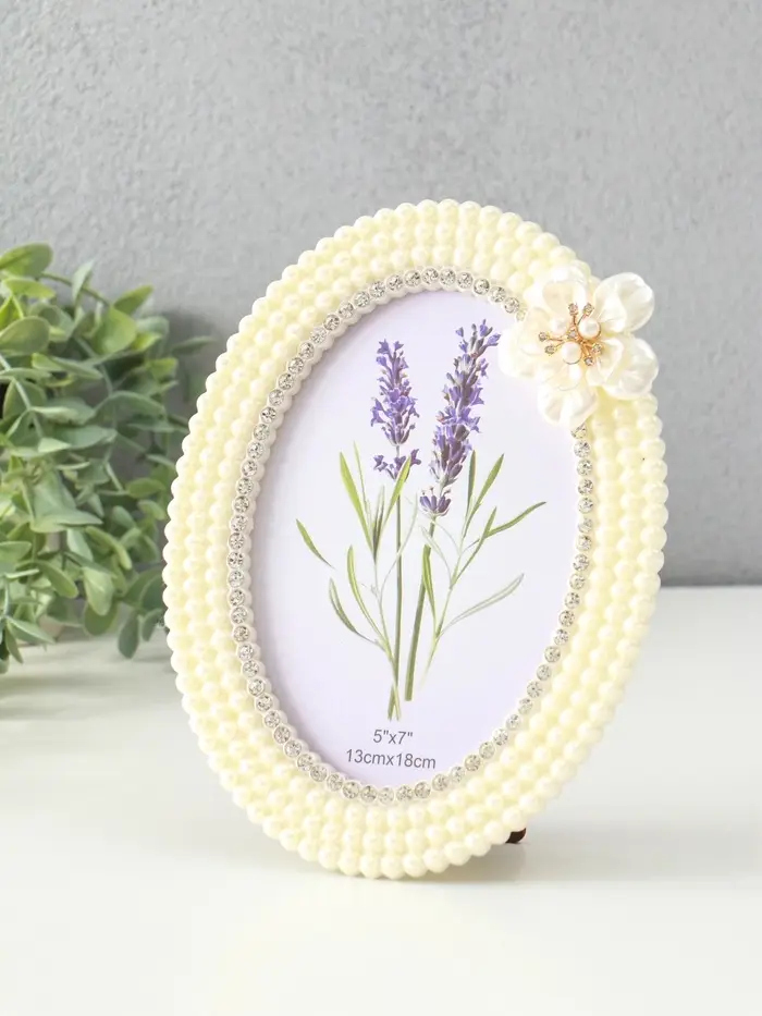 Фоторамка пластик 13х18 см "Белый жемчуг с цветком" овальная