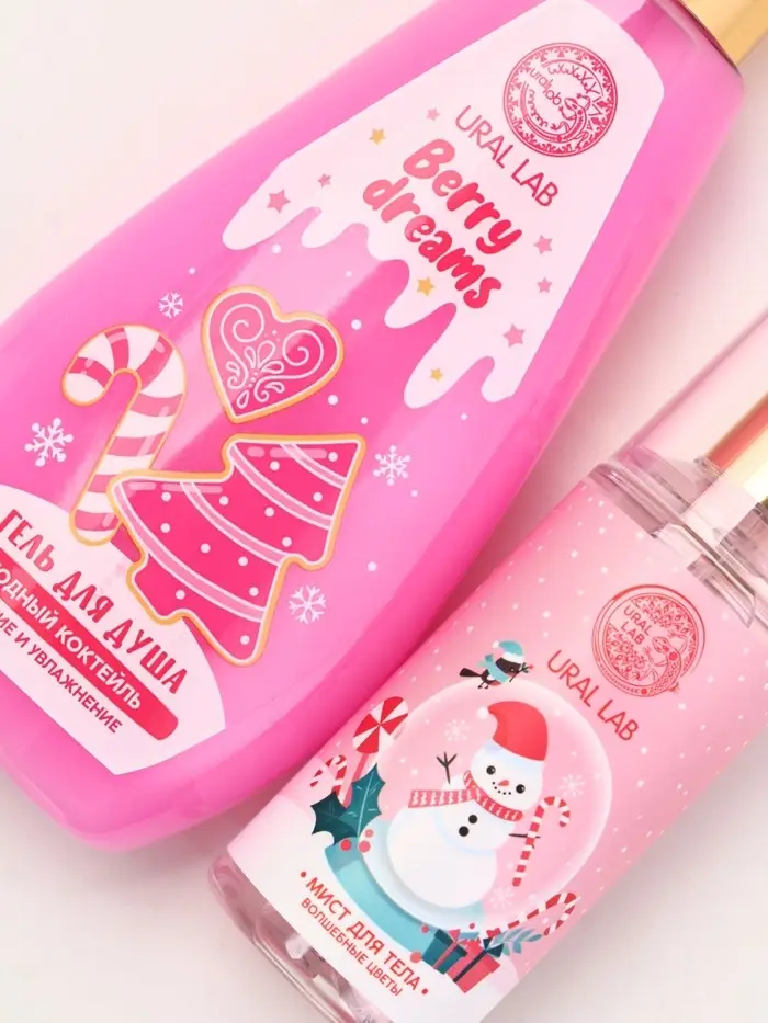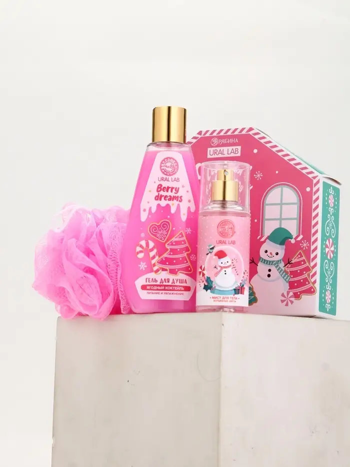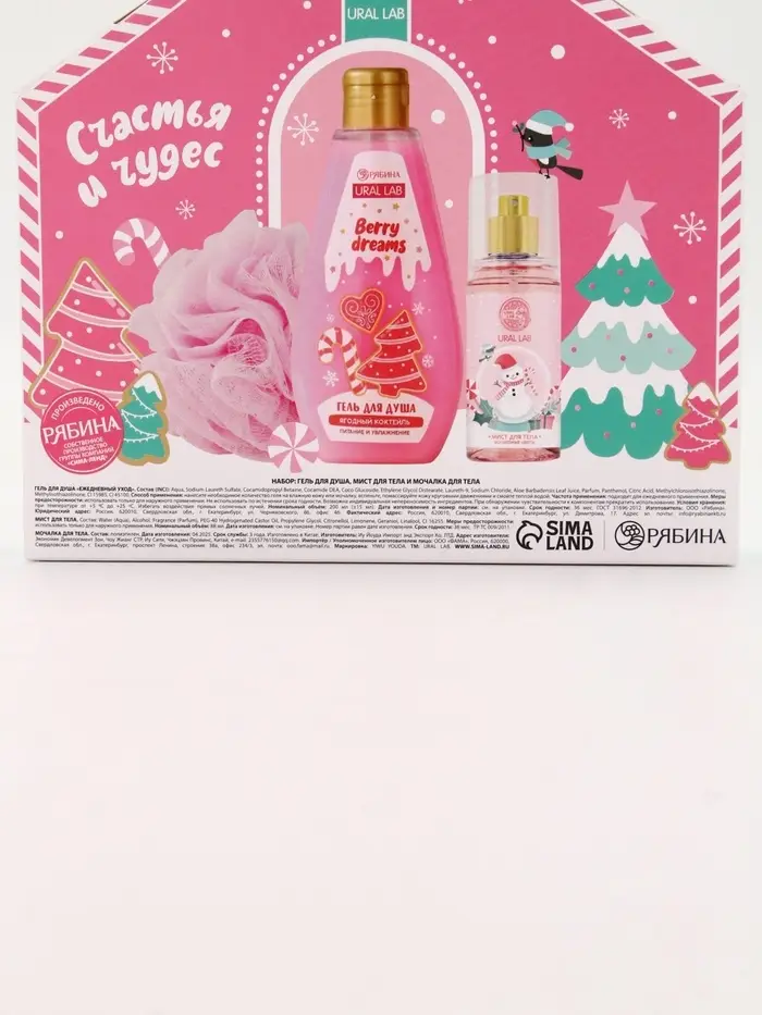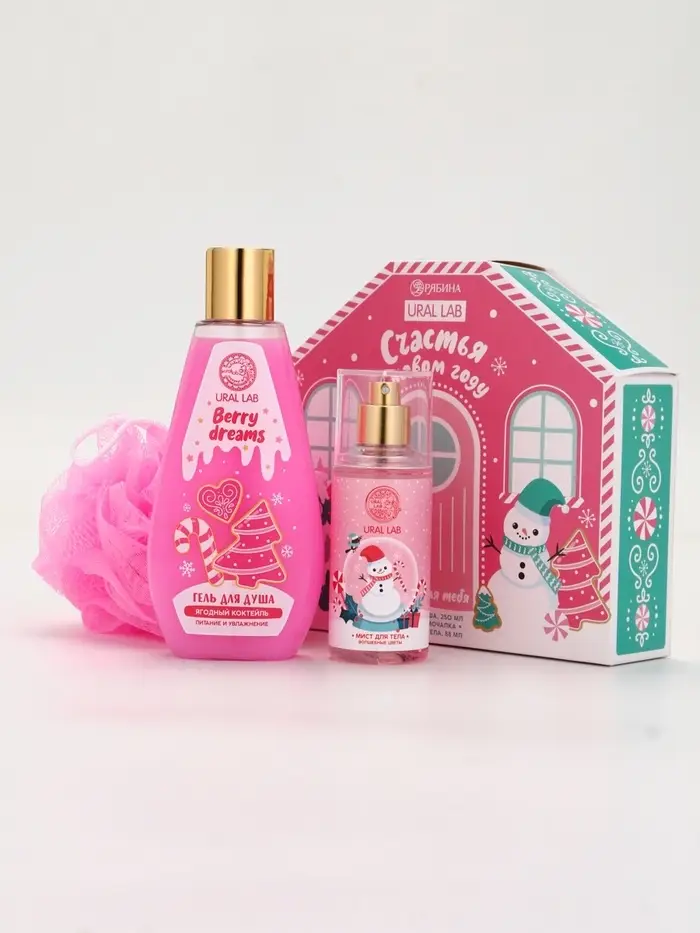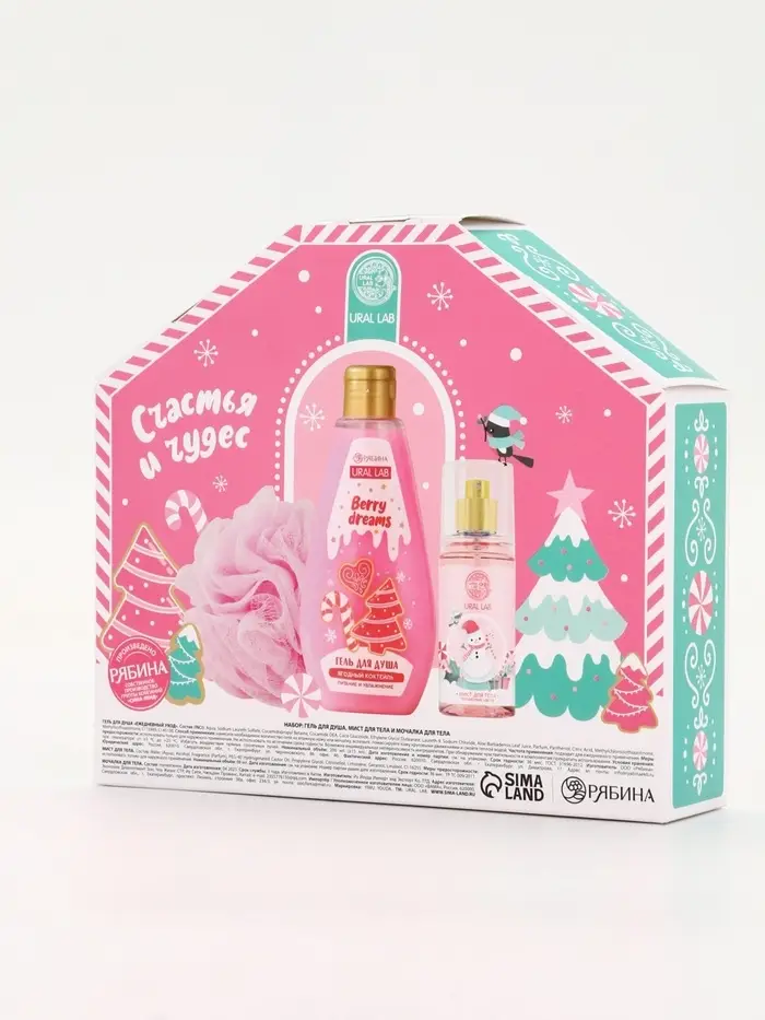 Подарочный набор косметики «Счастья в Новом году», гель для душа, мочалка и мист, URAL LAB