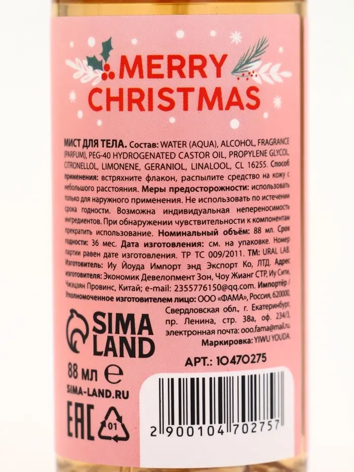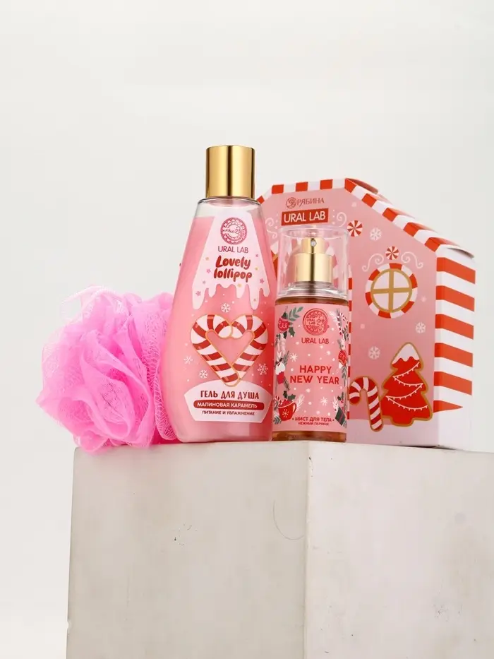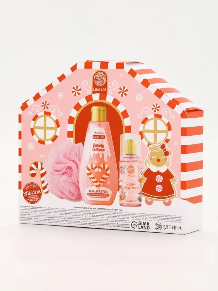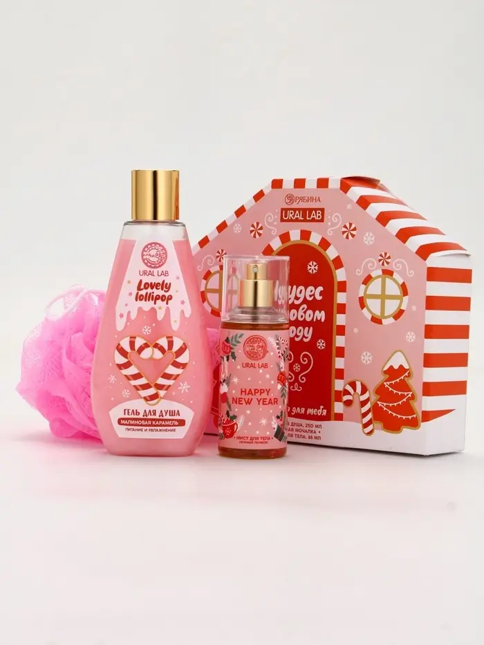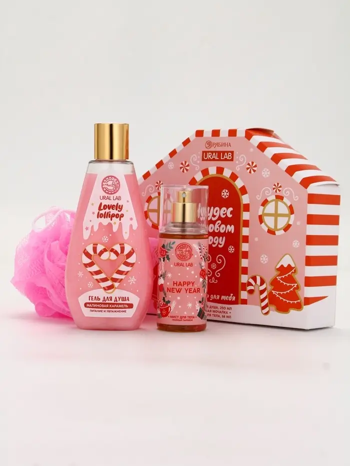Подарочный набор косметики «Чудес в Новом году», гель для душа, мочалка и мист, URAL LAB