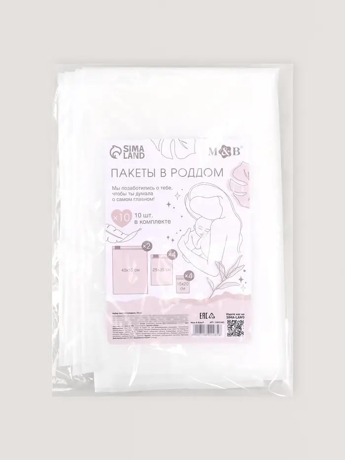 Набор пакетов в роддом, 15х20, 25х35, 40х55, 10 шт, M&B
