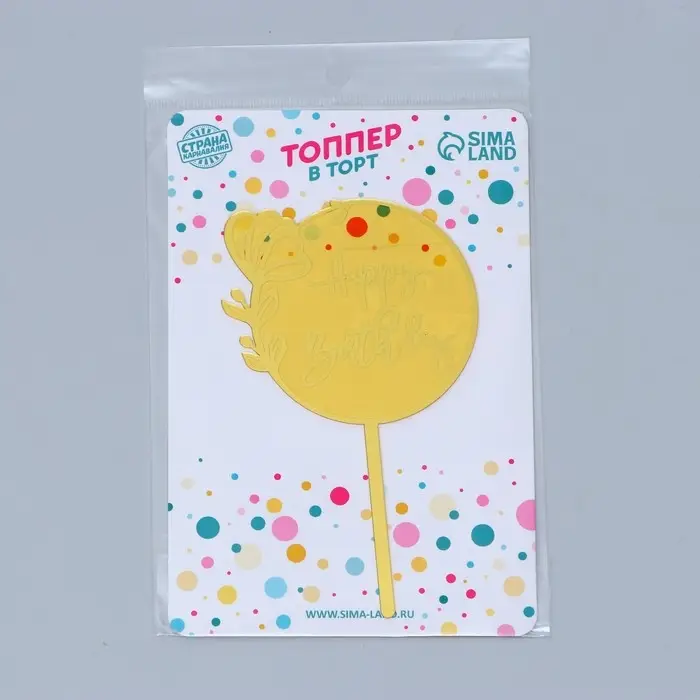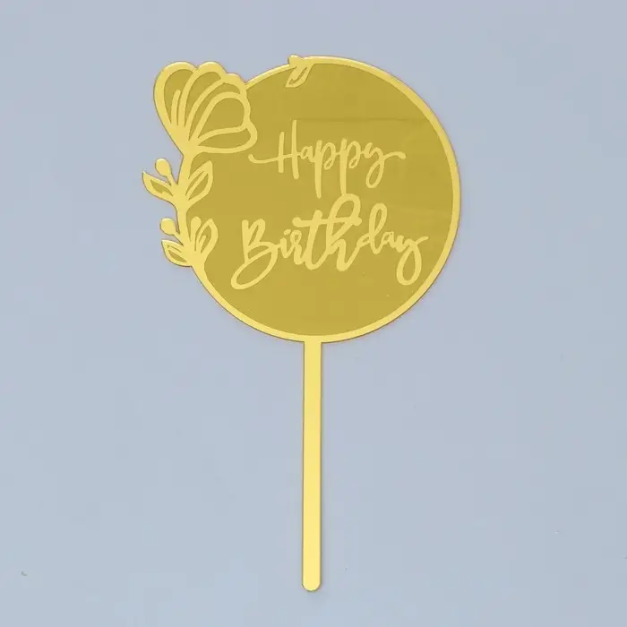 Топпер "Happy Birthday", круг, золото, Дарим Красиво