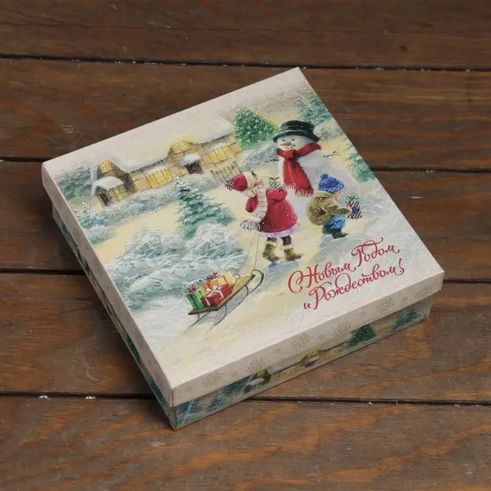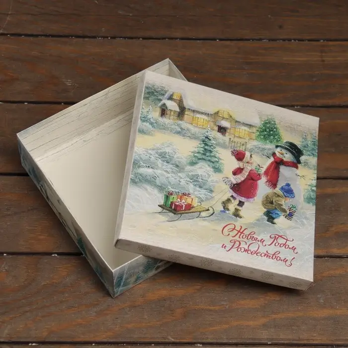 Коробка складная, крышка - дно «С Новым годом и Рождеством» 20 х 20 х 6 см