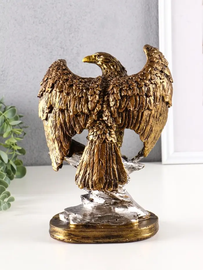 Представляем величественный элемент декора, который добавит в ваш интерьер нотку силы и благородства — фигурку орла на камне из полистоуна. Её бронзовый оттенок и детализированный дизайн создают атмосферу величия и уверенности, делая её универсальным аксессуаром для любого пространства.
