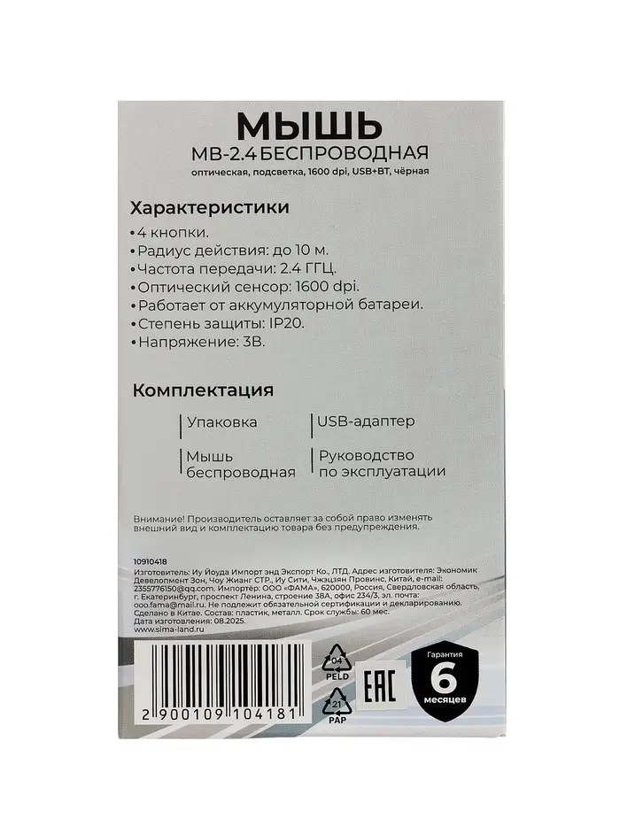 Мышь MB-2.4 беспроводная, оптическая, подсветка, 1600 dpi, USB+BT, чёрная