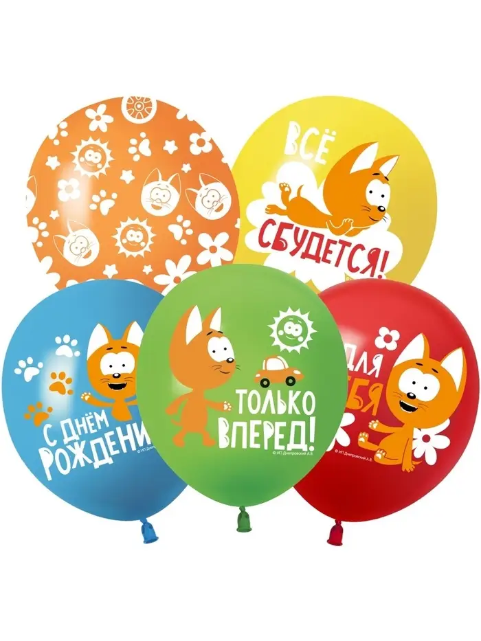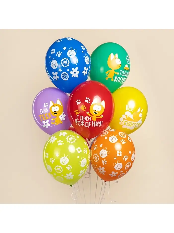 Воздушные шары латексные 12" «Котенок Котэ, С Днем Рождения», 25 шт., МИКС