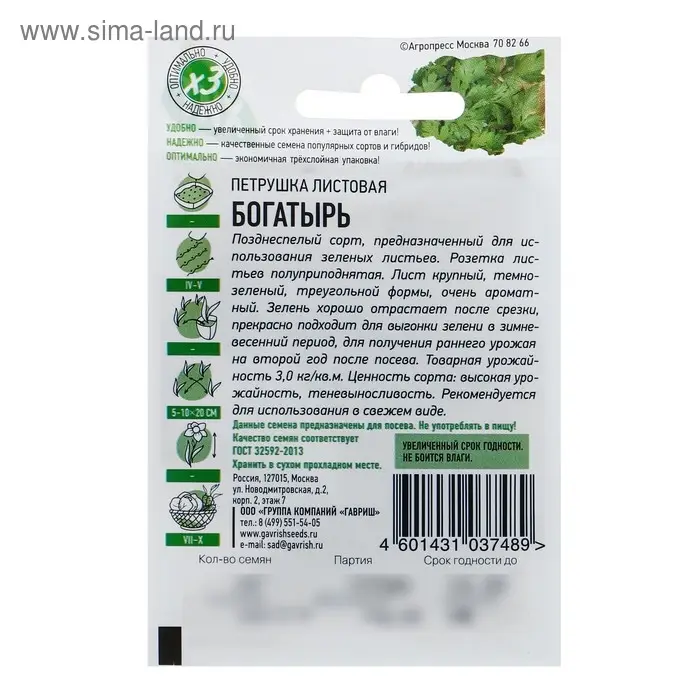 Семена Петрушка универсальная "Богатырь", ц/п, 2 г серия ХИТ х3