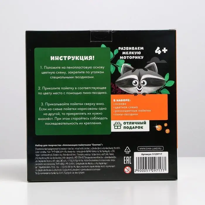 Аппликация пайетками для детей «Дракончик», набор для творчества