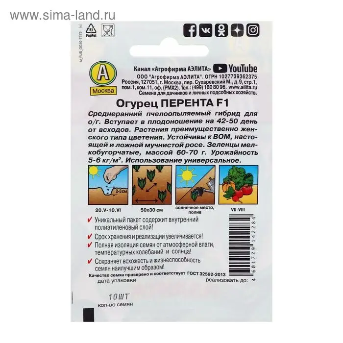Семена Огурец «Перента», «Лидер», F1, 10 шт.