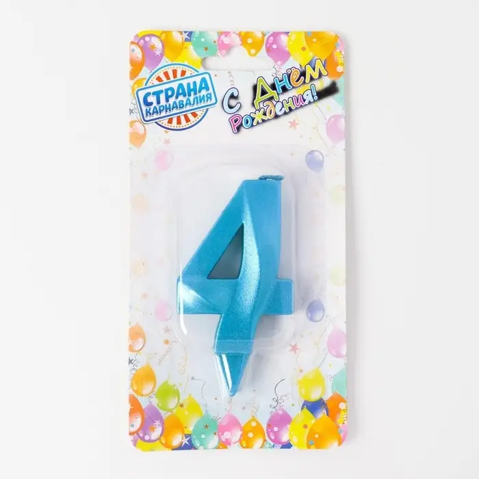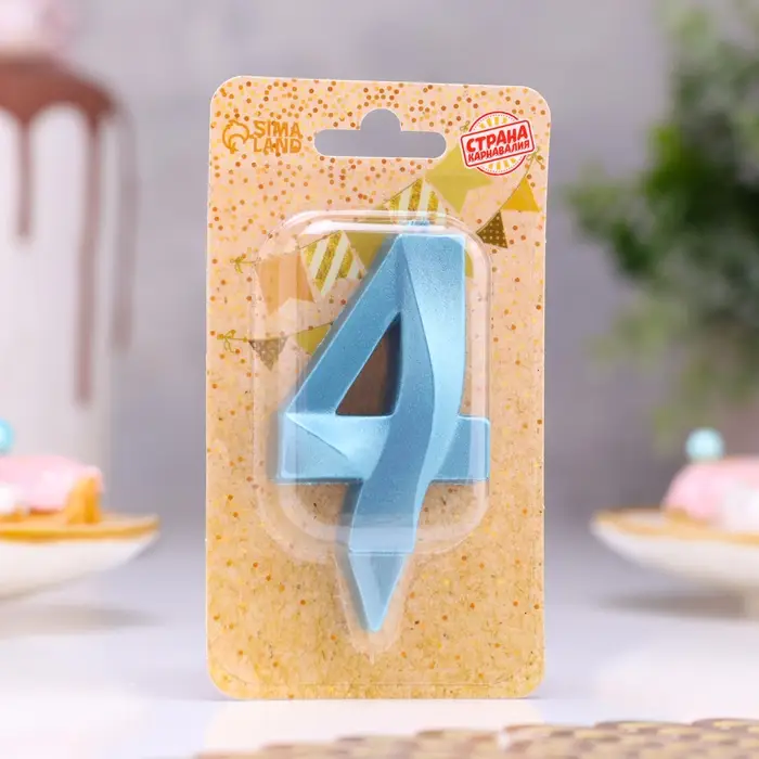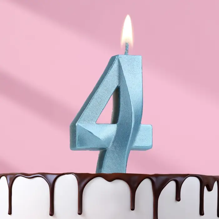 Свеча в торт «Грань», цифра 4, голубой металлик, 6.5 см
