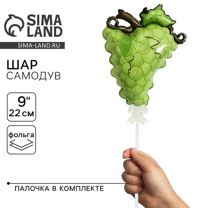Воздушный шар фольгированный - самодув 9" «Виноград», с палочкой