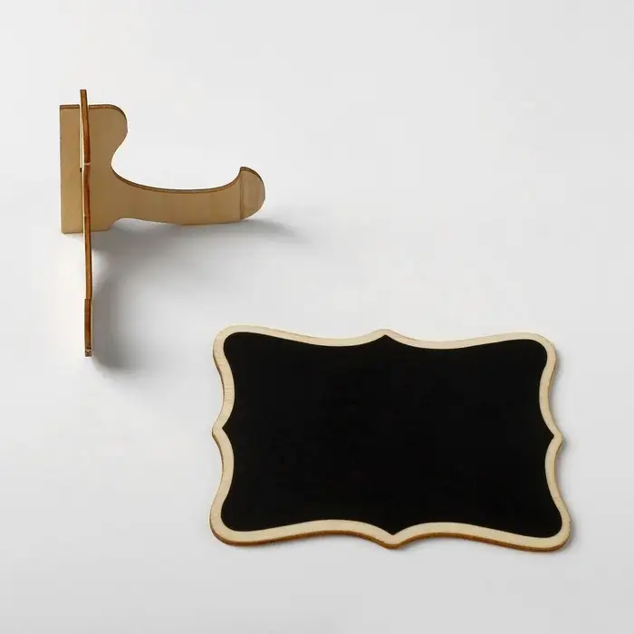Меловой ценник из дерева с черным покрытием — это стильный и многоразовый аксессуар для оформления витрин и прилавков. На его поверхности удобно писать меловым маркером, что делает ценник идеальным для маркировки товаров, документов, акционных предложений и декоративного оформления. Надписи легко стираются влажной тряпкой, позволяя использовать его снова и снова. Прекрасно подходит для кафе, магазинов и выставочных залов, добавляя уникальный акцент и улучшая визуальное восприятие товаров, привлекая внимание клиентов к важной информации.