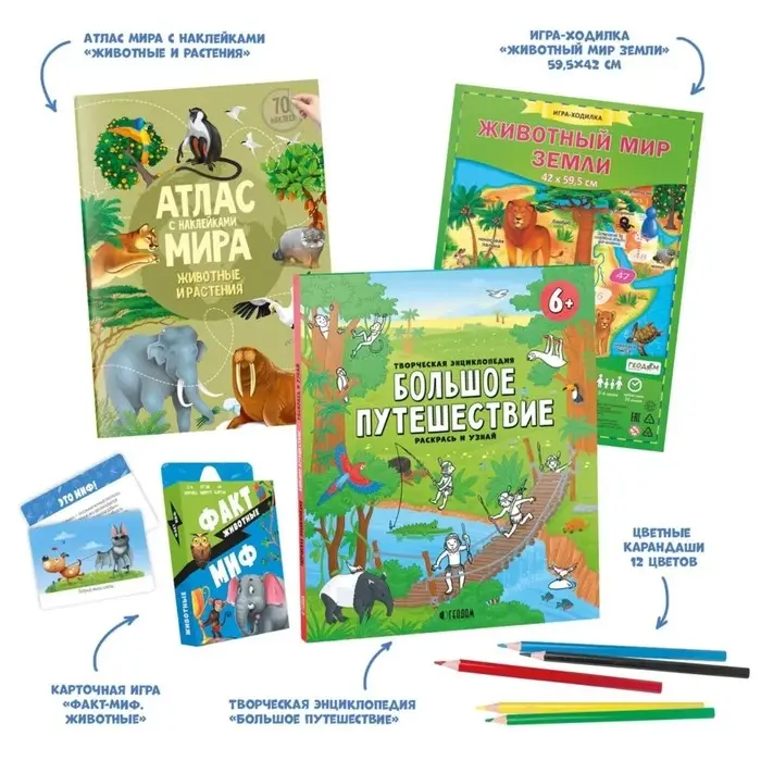 Набор 5 в 1 «Полезный подарок. Большое путешествие. Мир животных»