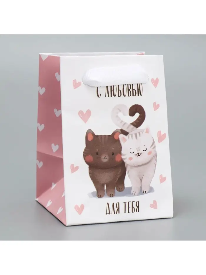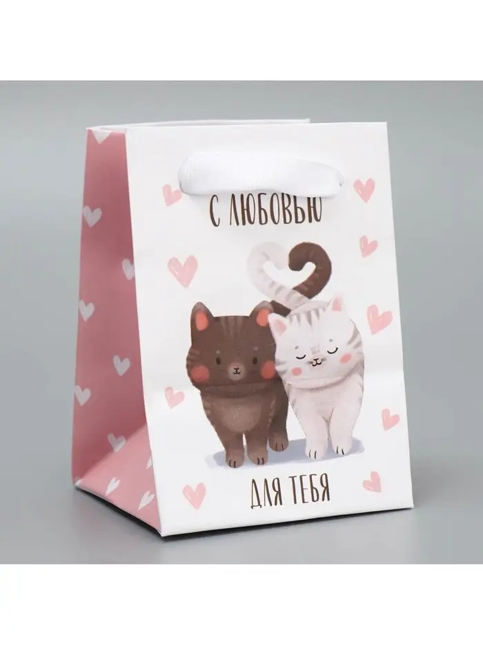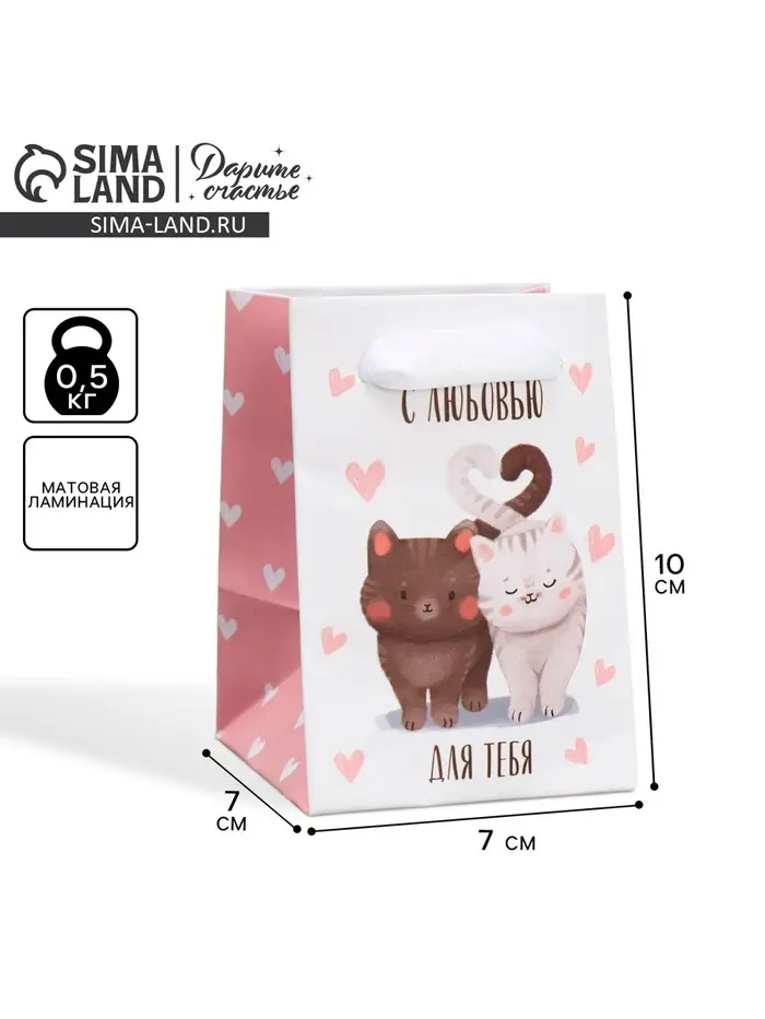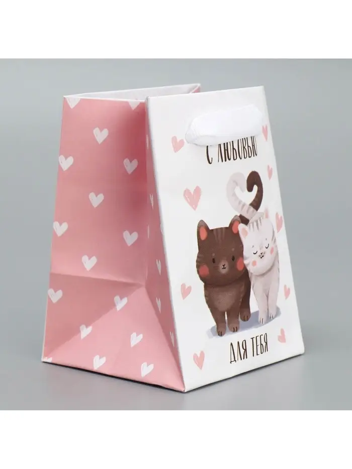 Пакет подарочный ламинированный, упаковка, «Котики», 7×10×7 см