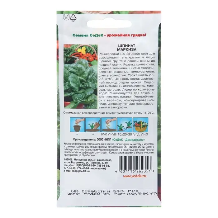 Семена Шпинат "Жирнолистный", сеялка, 4 г