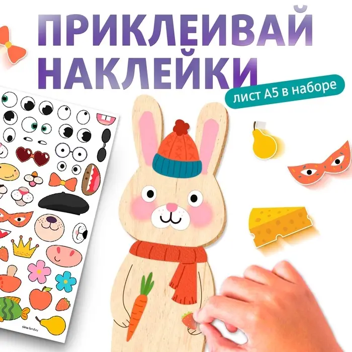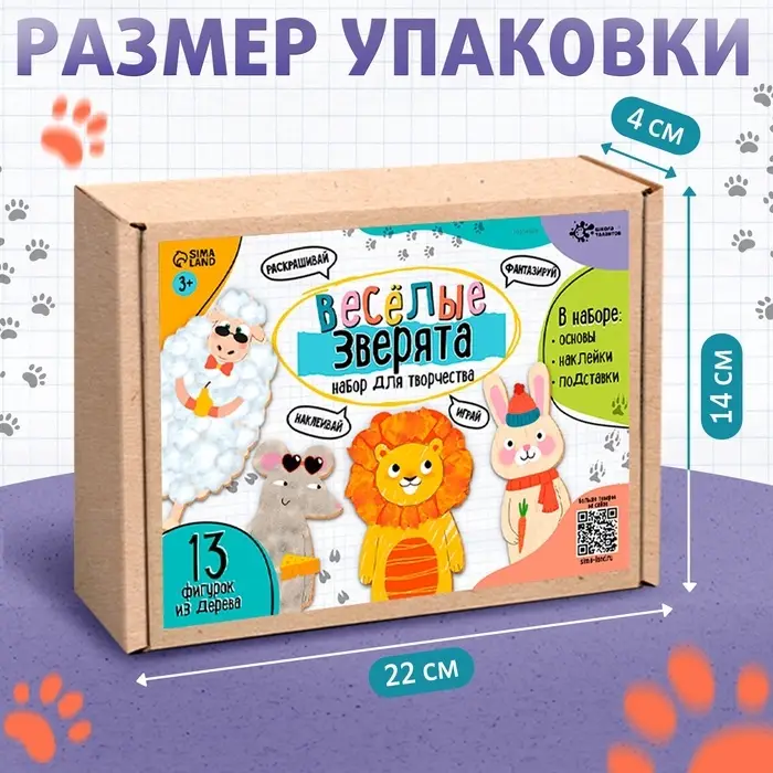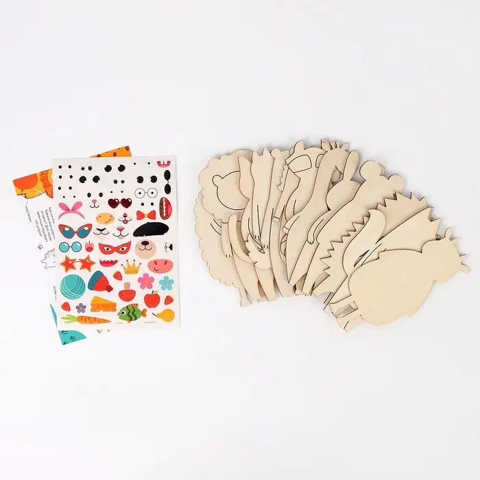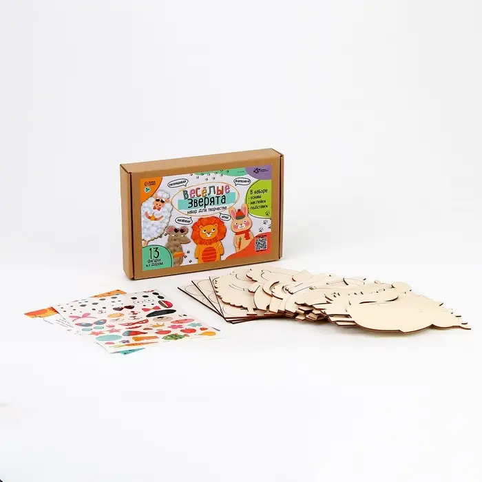 Роспись по дереву «Весёлые зверята», 13 основ, с наклейками