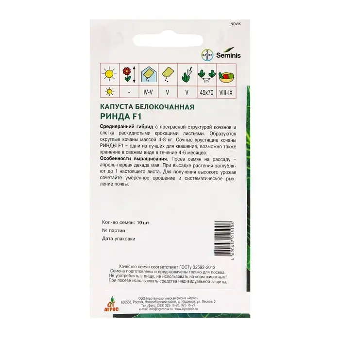 Посадка семян «Ринда» в открытый грунт не требует особых навыков, что делает их идеальным выбором для как для начинающих, так и для опытных садоводов. Обеспечьте своим растениям достаточно солнечного света и регулярный полив, и они отблагодарят вас обилием качественной капусты.