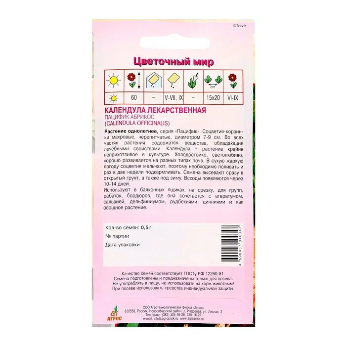 Семена Календула «Пацифик Абрикос», 0.5 г, «Агрос»