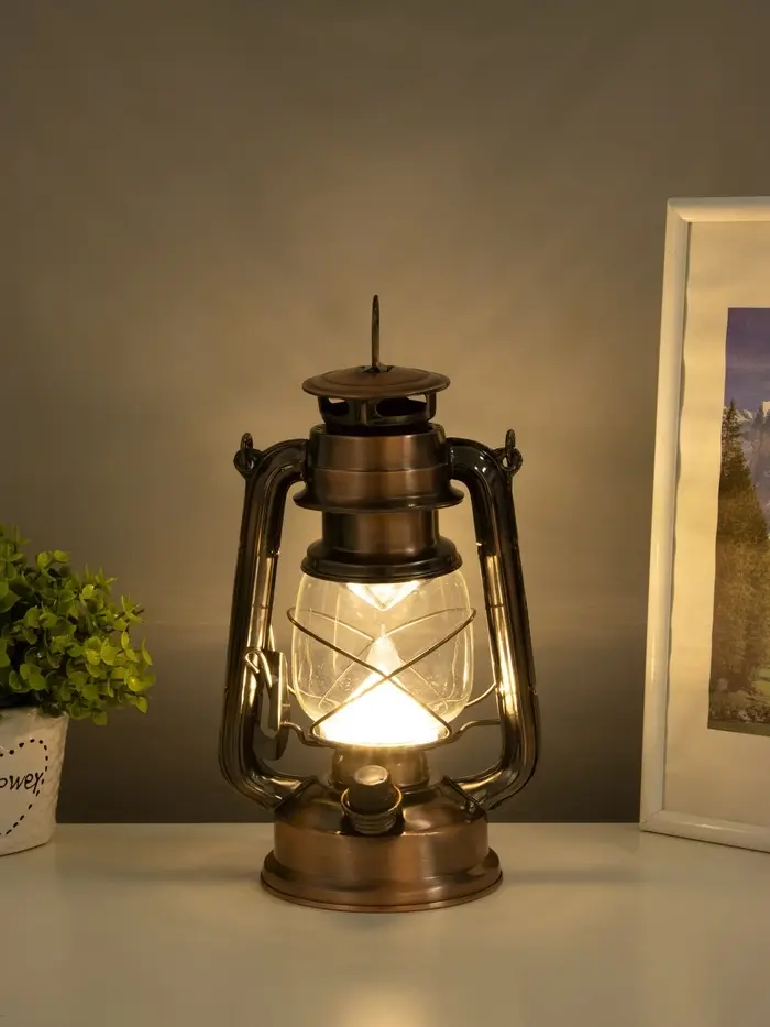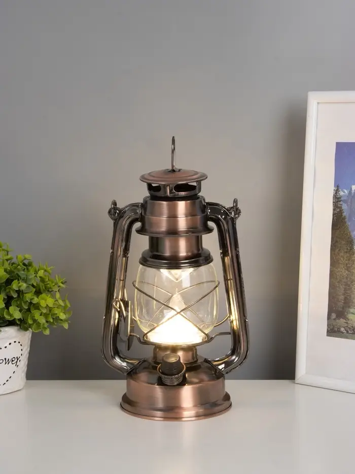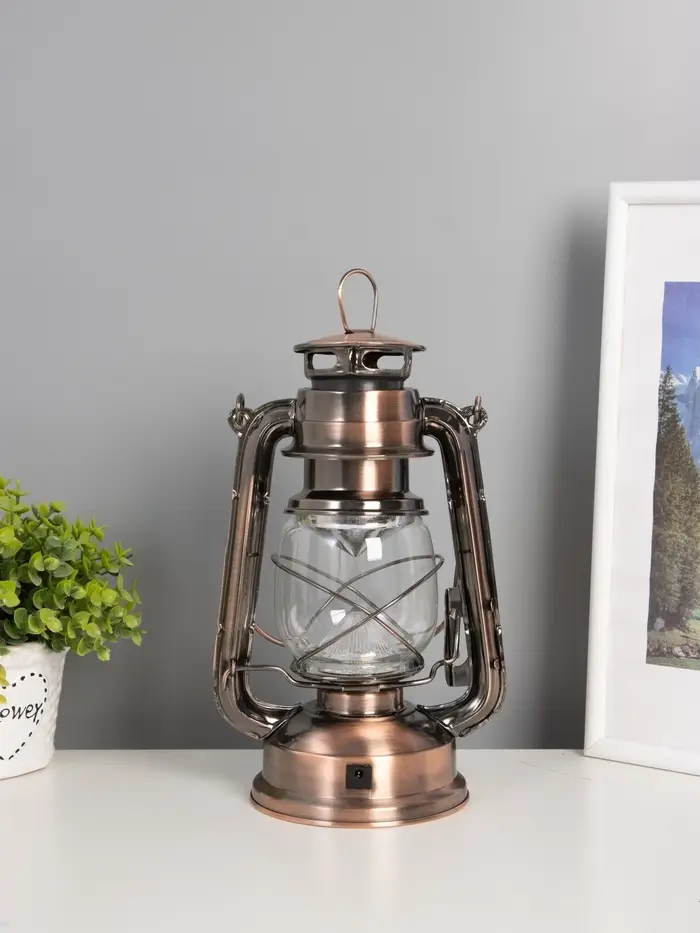 Ночник декоративный LED, аккум 5800mAh 3,7V "Фонарь" регулятор яркости бронза 11,5х16х24 см 109144