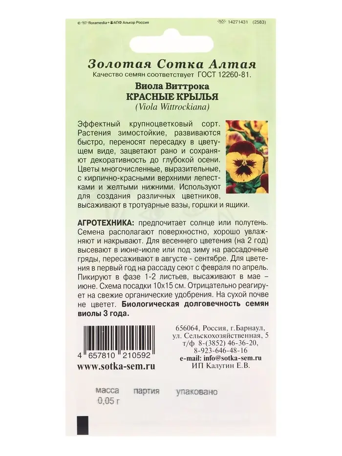 Семена Виола Красные крылья /Сотка/ 0,05г/*1500