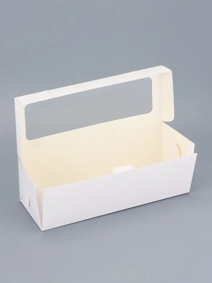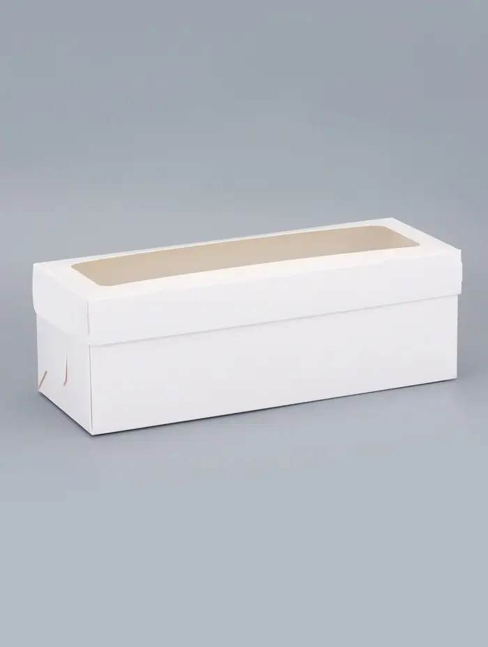Универсальность применения: Коробку используют не только для рулетов – в ней удобно хранить и переносить эклеры, профитроли, макаруны и другие кондитерские изделия продолговатой формы. Наличие окошка избавляет от необходимости дополнительных этикеток с изображением продукта. Коробка для рулета с окошком – это практичное решение для эстетичной подачи и безопасной транспортировки десертов.