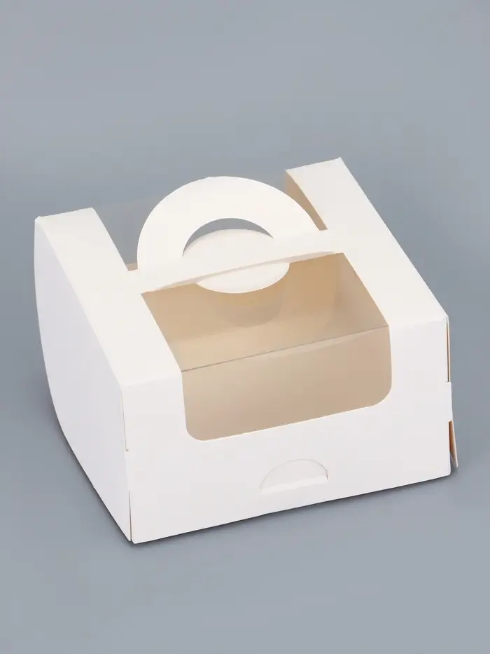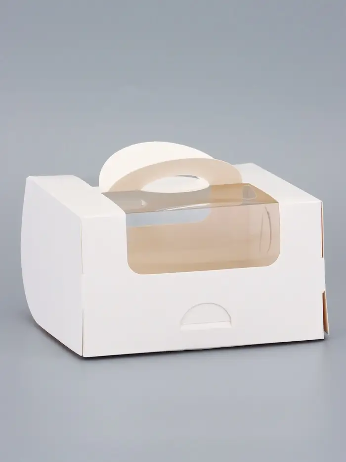 - Панорамное окно для полного обзора: Прозрачная вставка из ПВХ позволяет рассмотреть десерт со всех сторон. Окно демонстрирует художественное оформление торта без необходимости открывать упаковку.