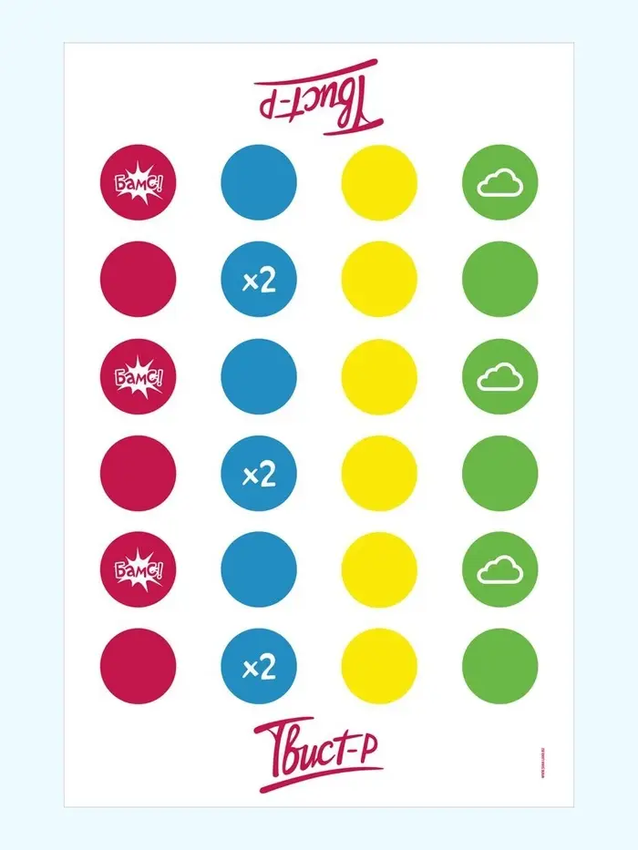 «Твист-р» - расстелите игровое поле, крутите рулетку и ставьте руки или ноги на нужные сектора. А дополнительные мини-задания сделают процесс ещё более увлекательным и непредсказуемым!
