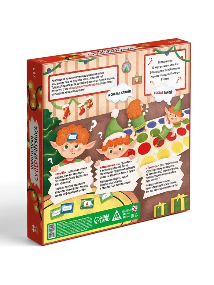 Когда за окном кружит снег, а в доме царит атмосфера праздника, так хочется провести время с близкими за увлекательными развлечениями. Именно для этого создана настольная игра «Новогодняя супер вечеринка» — ваш идеальный компаньон для незабываемых зимних вечеров, ведь вас ждут целых 3 игры в одной коробочке!