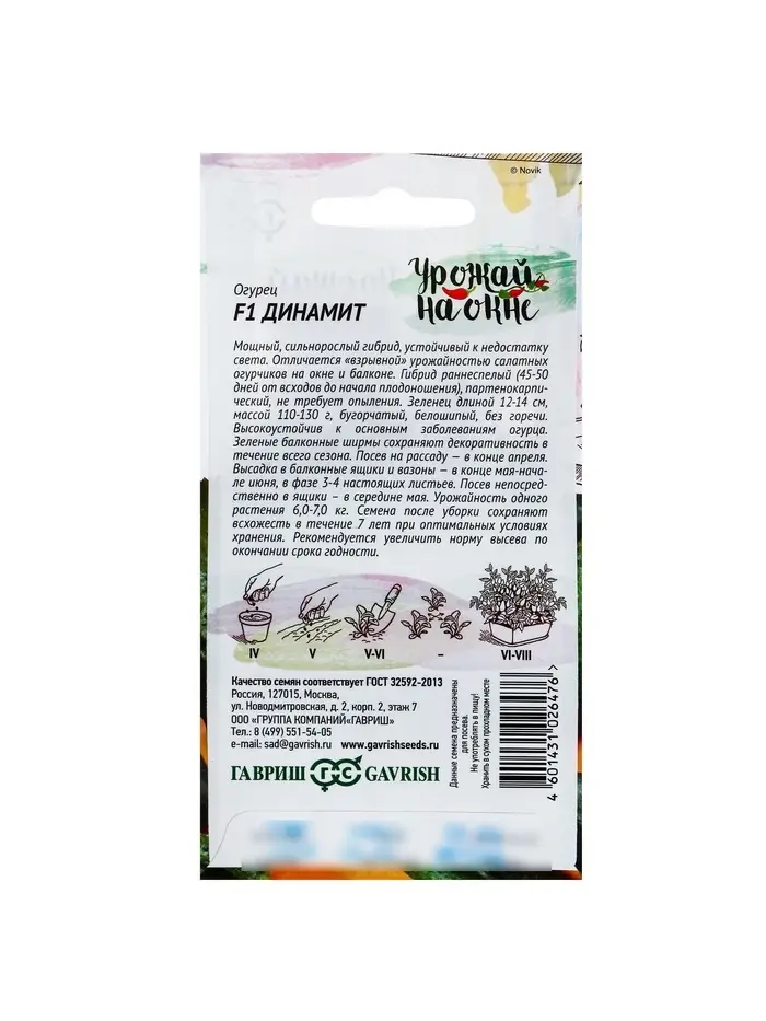 «F1 Динамит» — это раннеспелый партенокарпический гибрид женского типа цветения, у которого период от всходов до плодоношения составляет 45–50 дней. Устойчив к основным заболеваниям огурца. Предназначен для выращивания в плёночных теплицах.