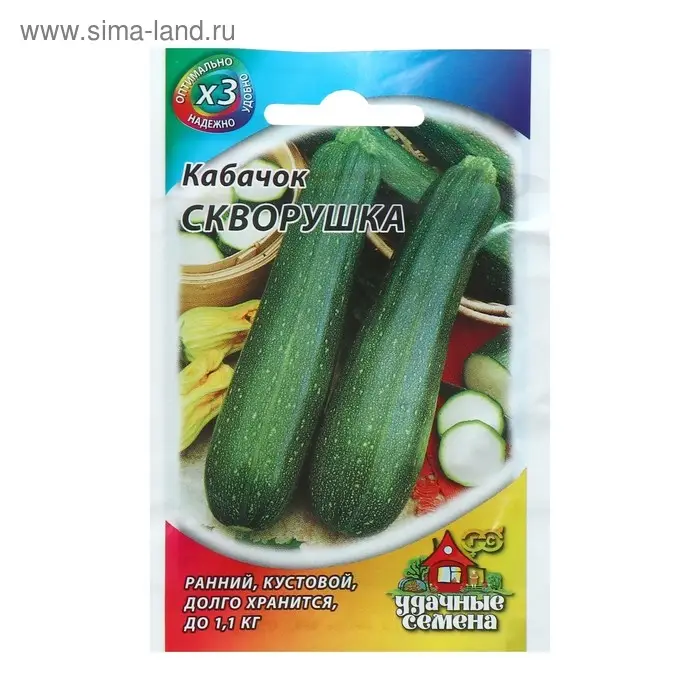 Раннеспелый (45-50 дней от полных всходов до первого сбора) сорт. Растение кустовое. Плод цилиндрический, слаборебристый, темно-зеленый, с рисунком в виде крапинок, массой 0,7-1,1 кг. Мякоть белая или светло-желтая, очень вкусная и нежная. Достоинства сорта: засухо- и холодостойкость, отличные вкусовые качества плодов. Урожайность 5,8-7,5 кг/м2. Плоды употребляют в вареном, тушеном и жареном виде, а также свежими (молодые завязи) в салатах. Зрелые крупные плоды хранятся до 4 месяцев. Выращивается рассадным способом и прямым посевом в грунт.