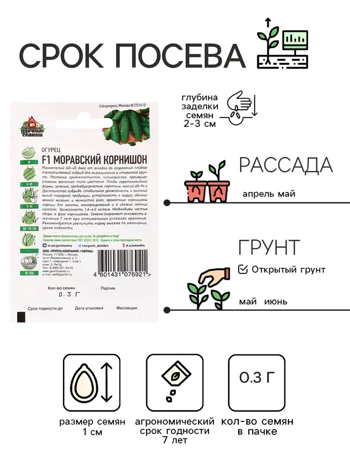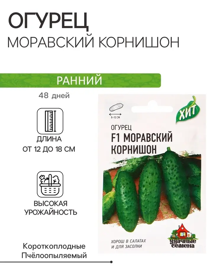 Семена Огурец "Моравский корнишон" F1, раннеспелый, пчелоопыляемый, 0,3 г серия ХИТ х3